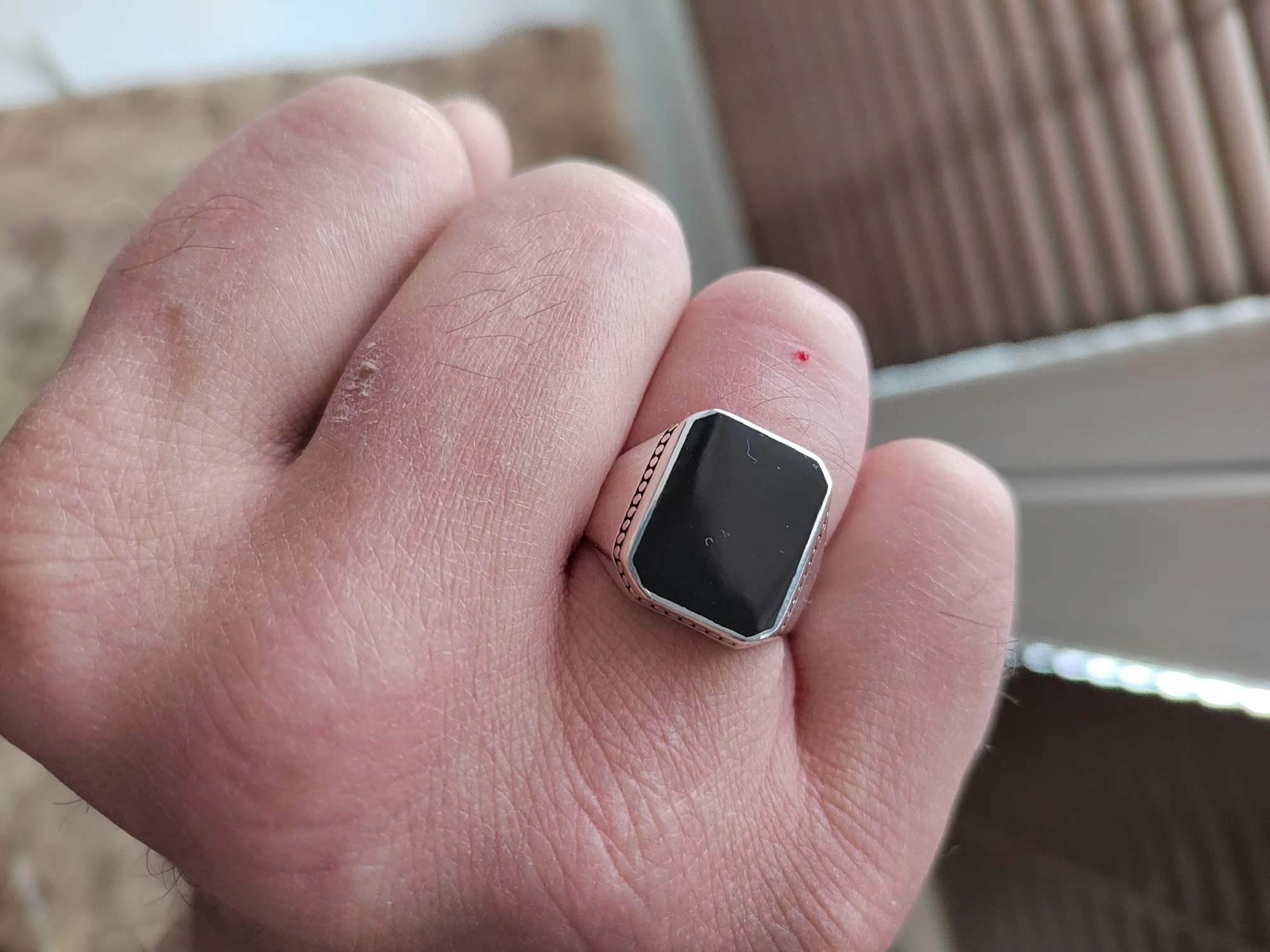Make a bold statement with our 925 silver ring featuring a square black top, exuding sleek and sophisticated allure.